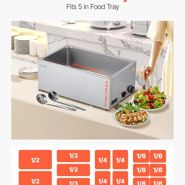 • Spacious Design: 9-inch deep chambers offer ample room for large portions — ideal for catering or family-style dining.