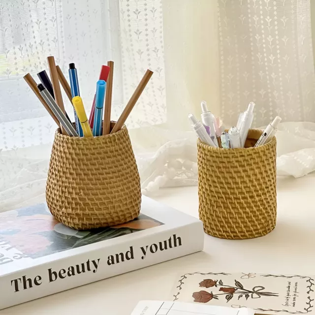 Elegant Imitation Rattan Bamboo Pen Holder & Multi-Purpose Storage Basket