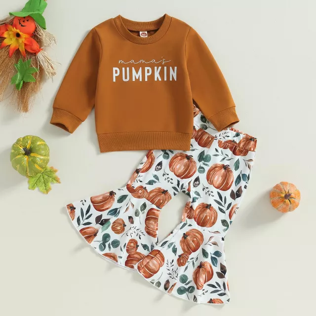 Dress your little girl in adorable comfort and style with this 2-piece outfit set featuring a letter print sweatshirt and pumpkin-patterned flare pants. Designed for playful days and cozy moments, this outfit brings a perfect blend of fun and fashion to her wardrobe. The set includes a soft, long-sleeve top paired with beautifully printed pants that add a touch of charm to any day.