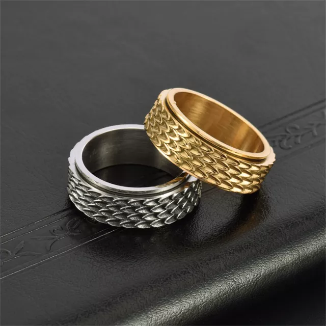 Men’s Vintage Viking Dragon Scale Spinner Ring – Norse Ouroboros Stainless Steel